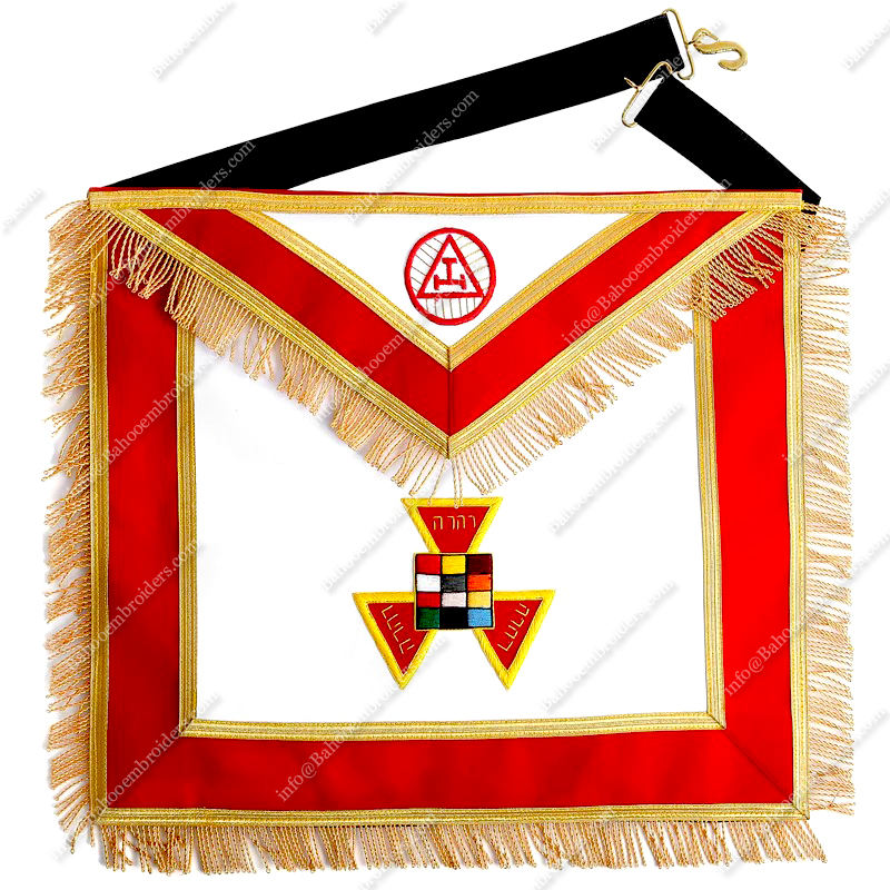 TABLIER MAÇONNIQUE REGALIA PAST HIGH PRÊEST ROYAL ARCH CHAPITRE-BRODERIE À LA MAIN ROUGE AVEC FRANGES