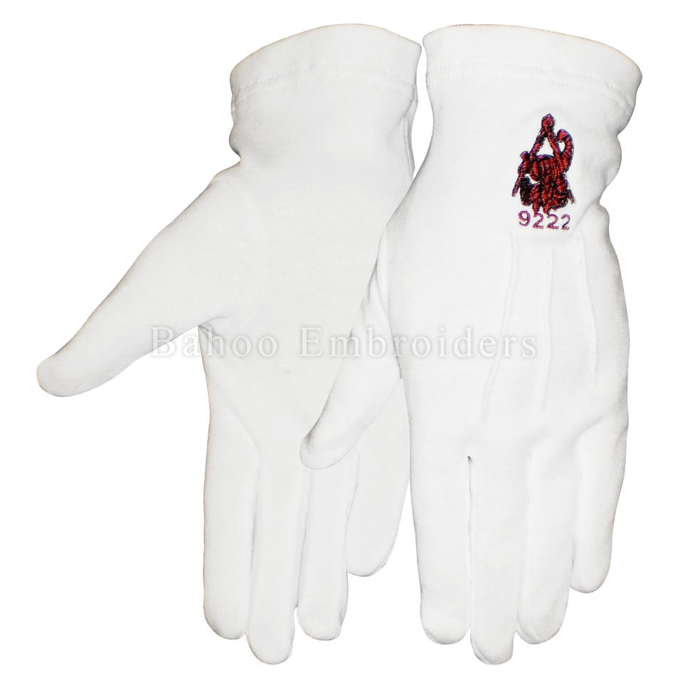 Nom du produit:Gants en coton blanc maçonnique French Rite avec broderie bleue et jaune
