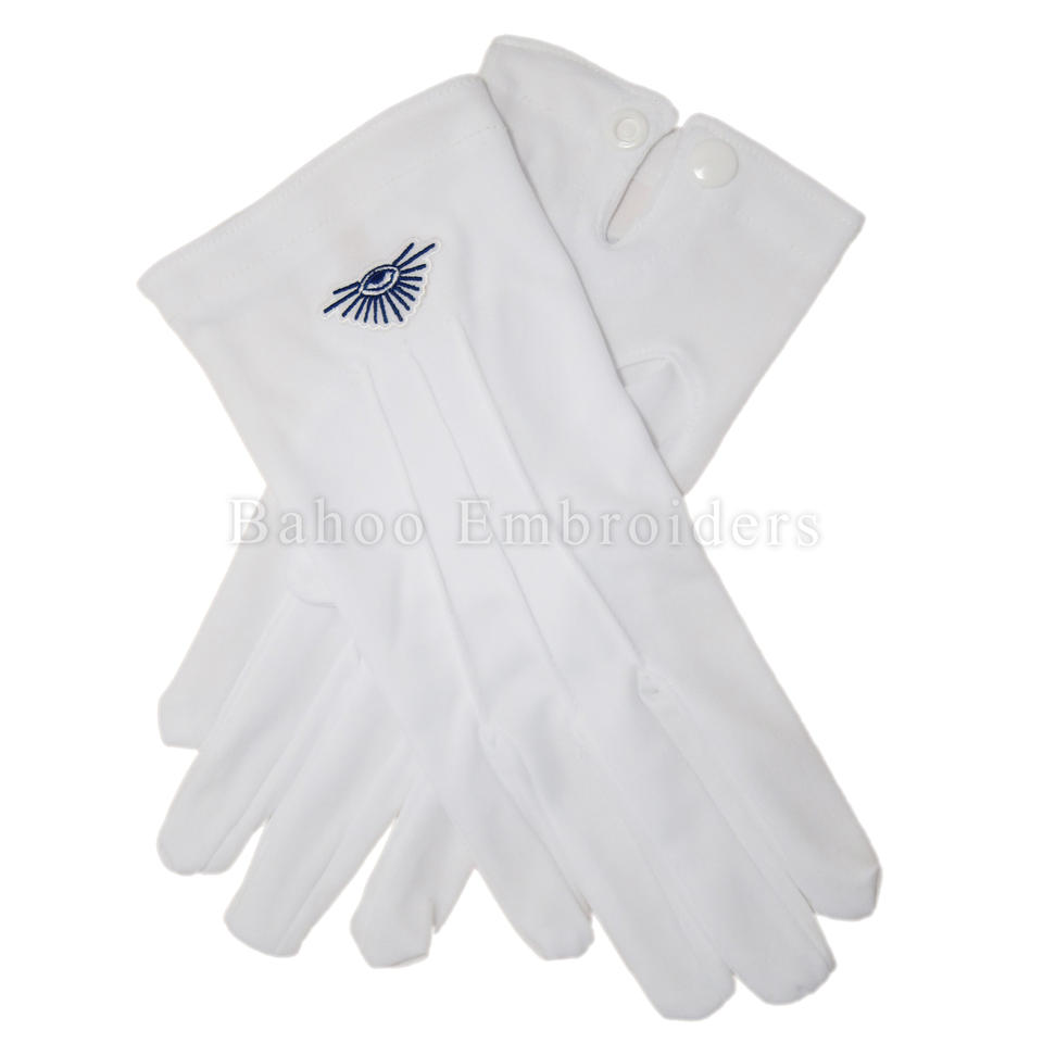 Nom du produit:Gants maçonniques en coton blanc avec logo brodé blanc