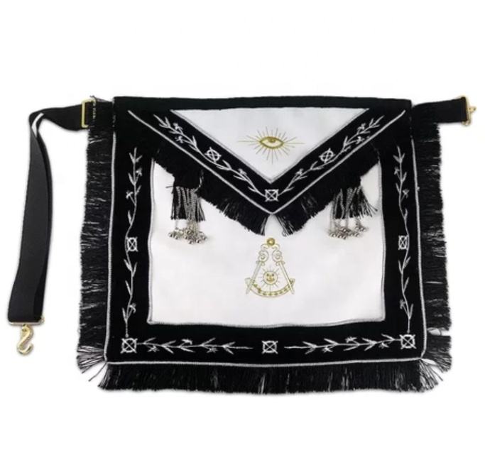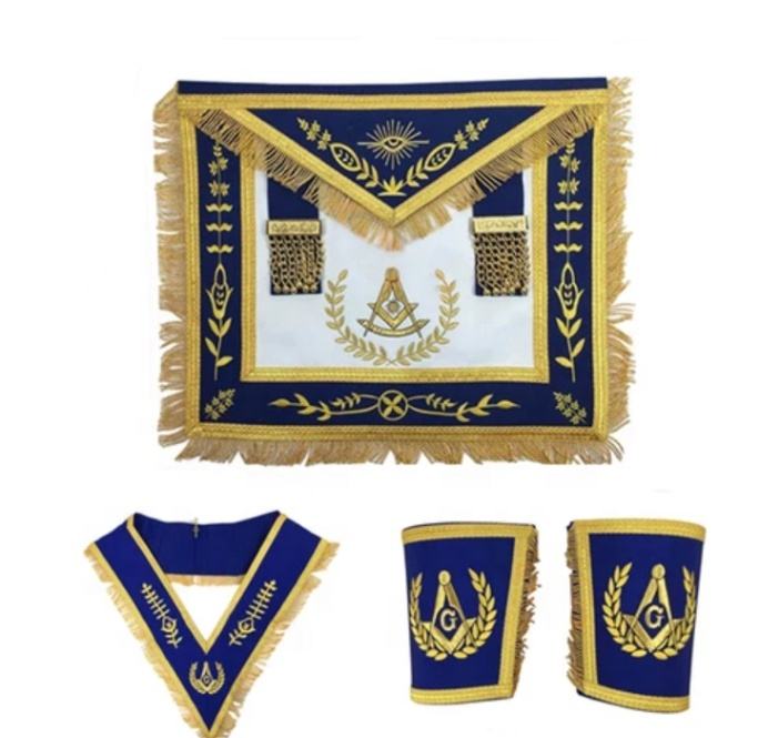 Ensemble de Regalia Maçonniques : Tablier, Col et Manchettes de Maître Maçon Bleus CP, Brodés, en Cuir Magnétique à Coudre