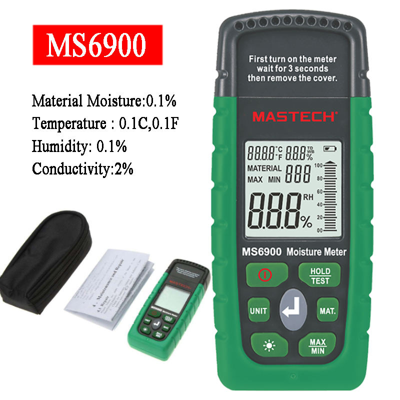 MASTECH MS6900 Mini humidimètre numérique professionnel Bois/ Bâtiments en béton Testeur d'humidité