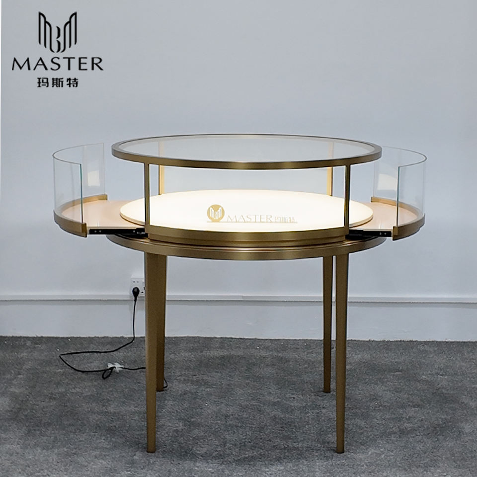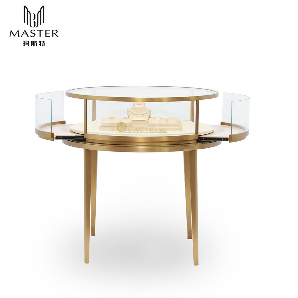 Comptoir d'exposition de luxe MASTER en verre trempé et acier inoxydable, vitrine ronde antivol pour exposition de bijoux