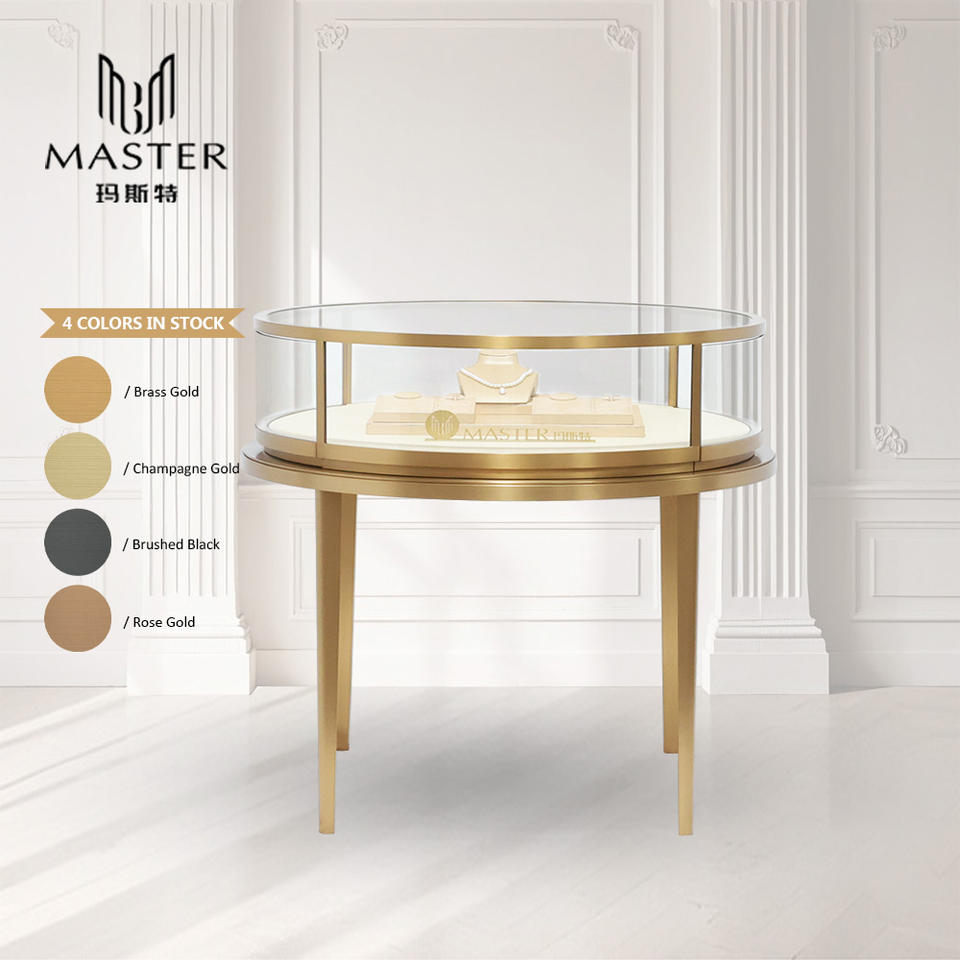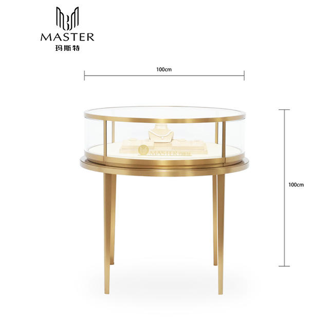 Vitrine de présentation de bijoux en acier inoxydable MASTER, étanche et anti-poussière, avec comptoir en verre trempé circulaire pour usage commercial
