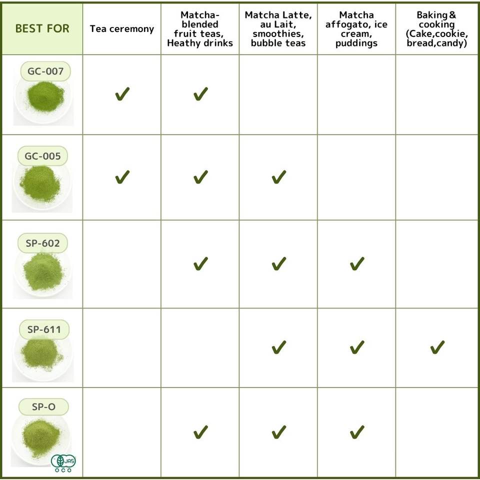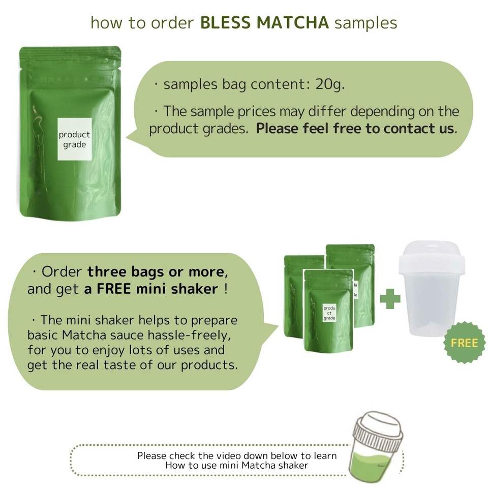 Matcha Powder Sample Bags of multiple GradesSpécification