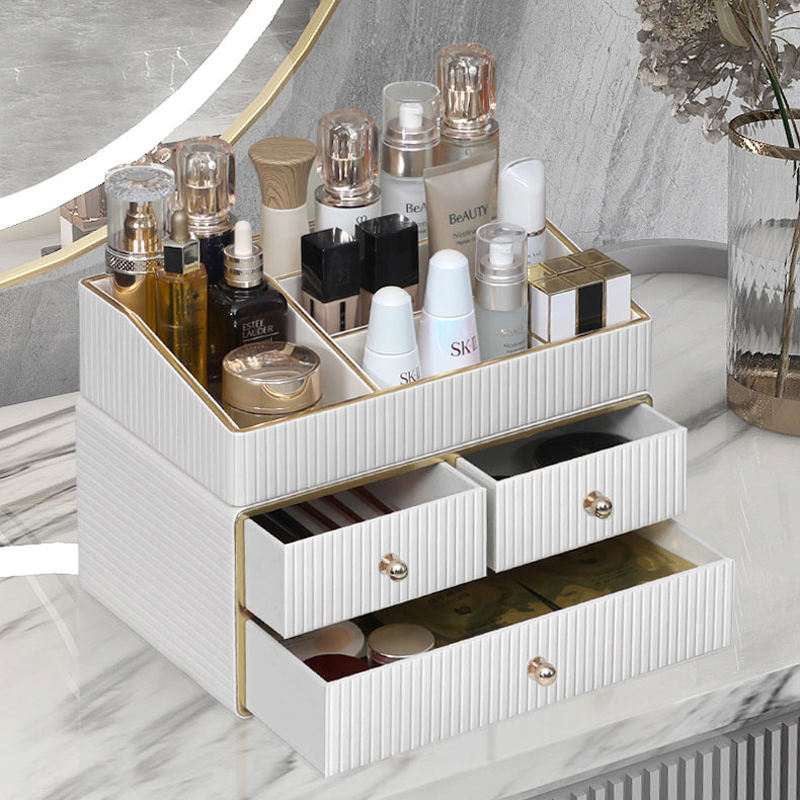MAVOBO Boîte de Rangement de Maquillage et Cosmétiques de Luxe en Cuir pour Bureau, Organisateur à Tiroirs Exquis et Luxueux