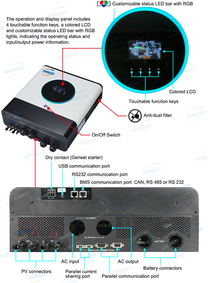 MAX II 8KW /11KW Axpert Onduleur solaire hors réseau monophasé MPPT 48V avec WiFi, peut être mis en parallèle