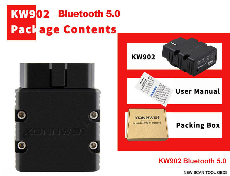 MAXOBD & Car Scanner APP universel voiture sans fil OBD2 Dongle KONNWEI KW902 OBD2 Bluetooth BLE OBD2 Scanner