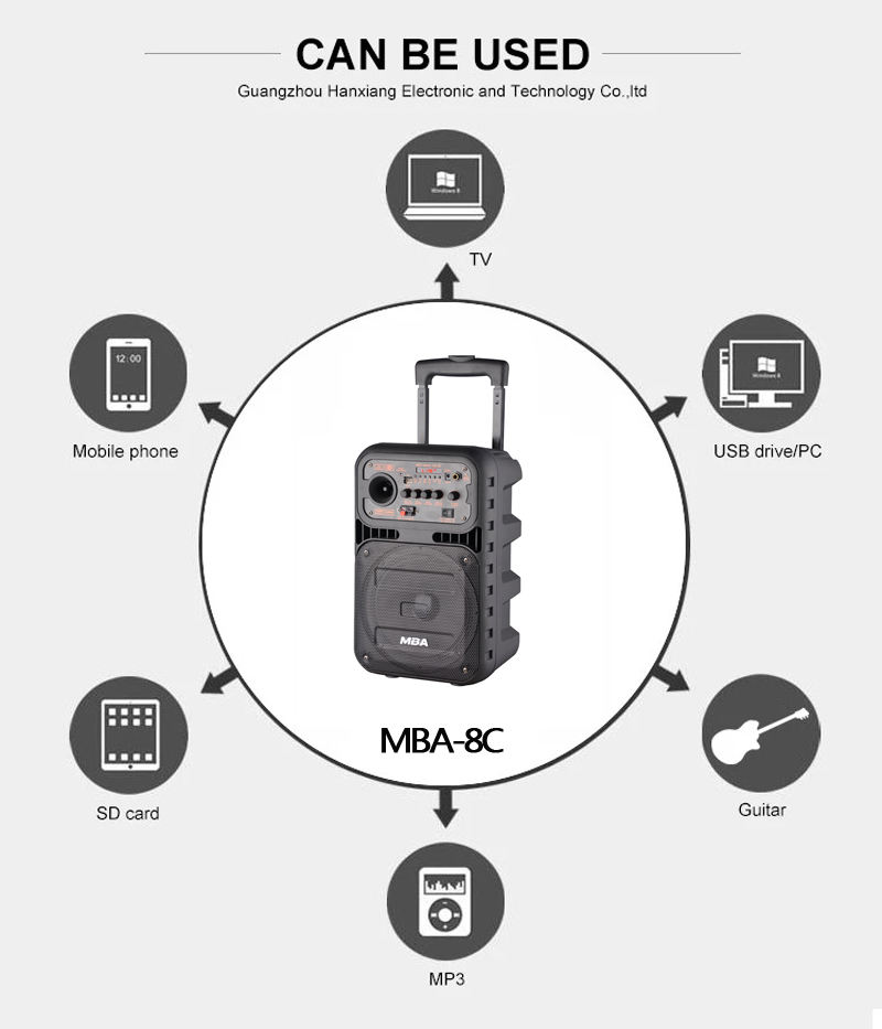Amplificateur Mini Karaoké Portable sur Chariot Actif 8 Pouces Prix Usine MBA avec Haut-parleur pour Danse, Fête en Plein Air, Camping