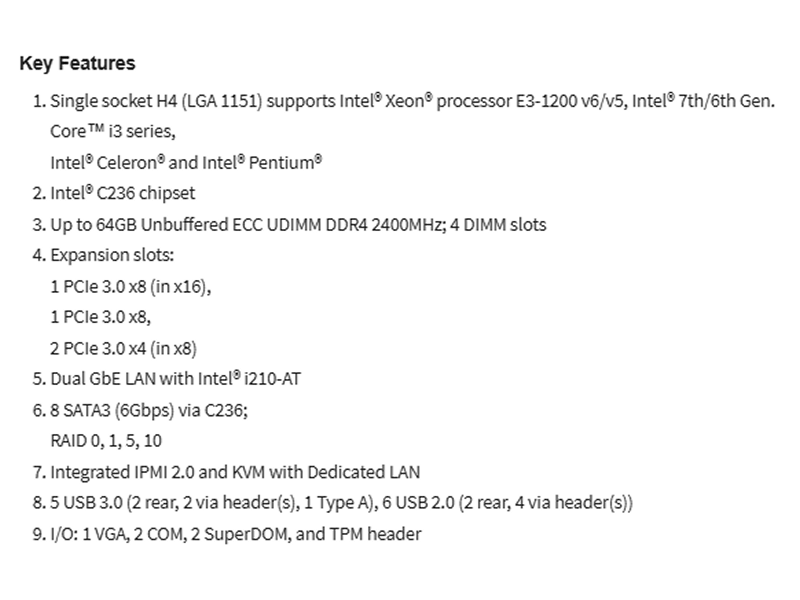 LGA 1151 Intel C236Application