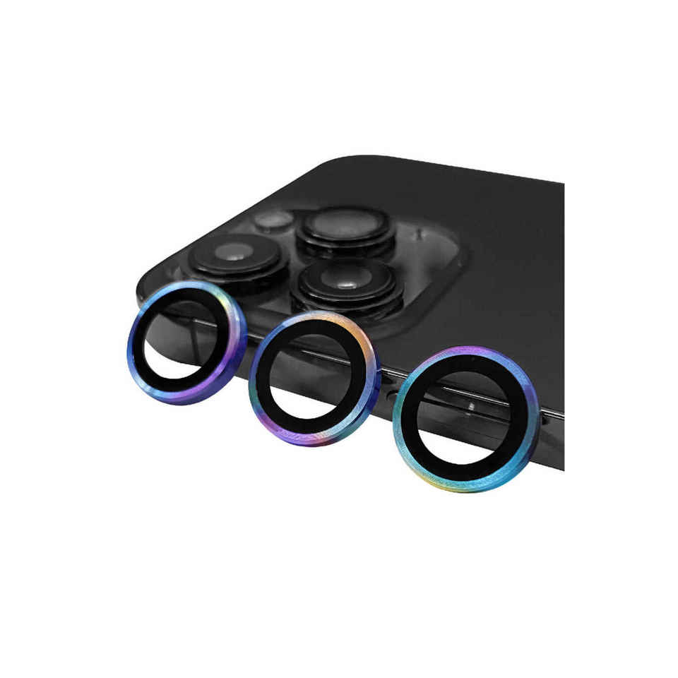 Protection d'objectif photo MBFX CL-07 : Anneau de protection coloré en aluminium et verre trempé de luxe pour objectifs d'iPhone 14 Pro