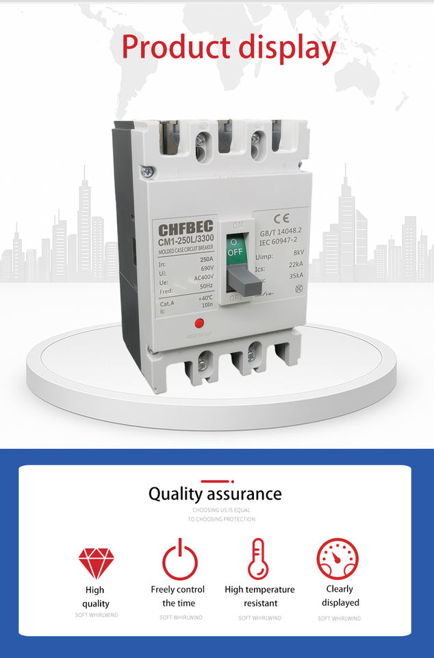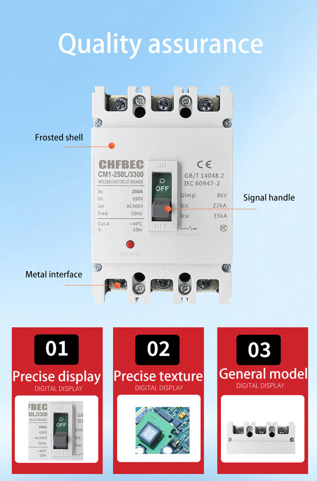 Disjoncteur à boîtier moulé MCCB 35kA, unité de déclenchement thermique-magnétique 400V 50Hz CHFBEC CM1-250L 125A/250A/400A/630A/1600A