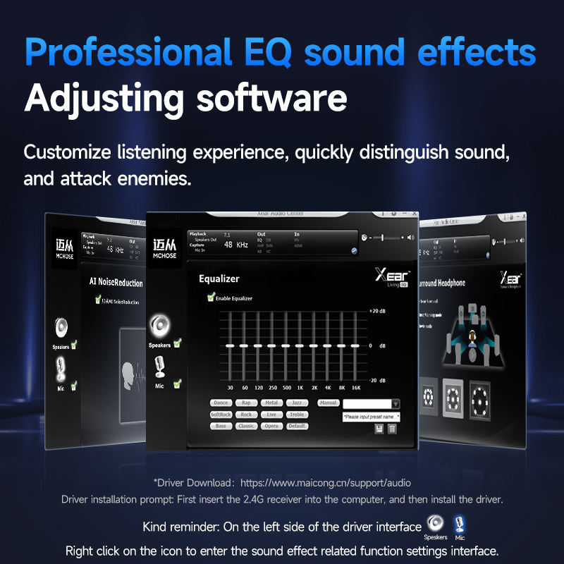 Casque de jeu MCHOSE V9 PRO : Choisissez le casque V9PRO avec connectivité Bluetooth / 2.4G / filaire pour ordinateur