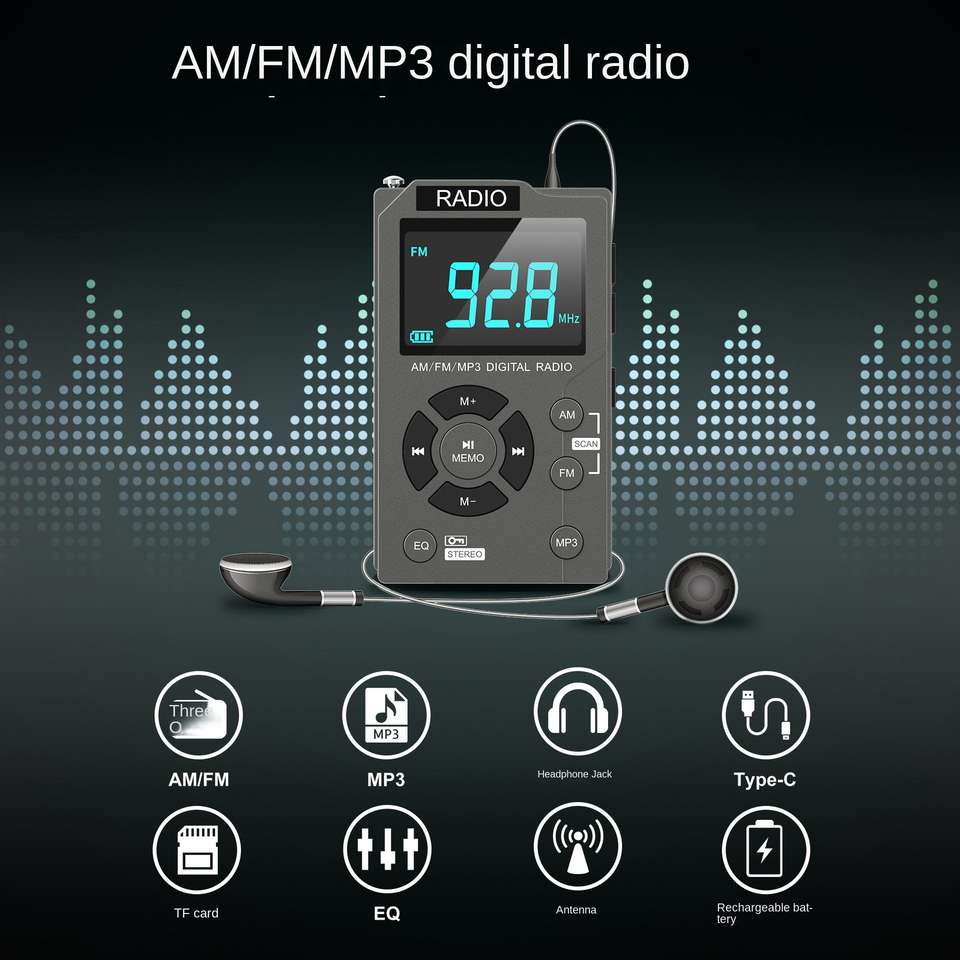Radio AM/FM portable de poche MD-258 avec lecteur MP3, lampe torche, affichage numérique, batterie rechargeable, pour usage extérieur, idéal pour les personnes âgées, en plastique