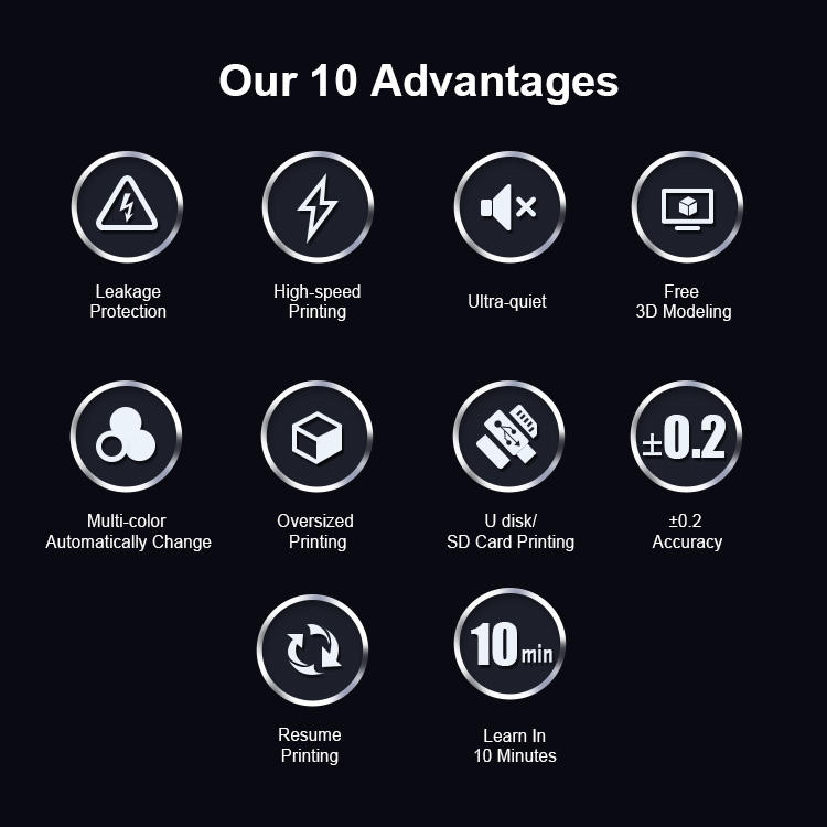 Caractéristiques :Lit chauffant, Double extrudeuse, Reprendre L'impression, Filament De Détection, Mise à niveau automatique, 800*1200*100mm, Protection contre les fuites
