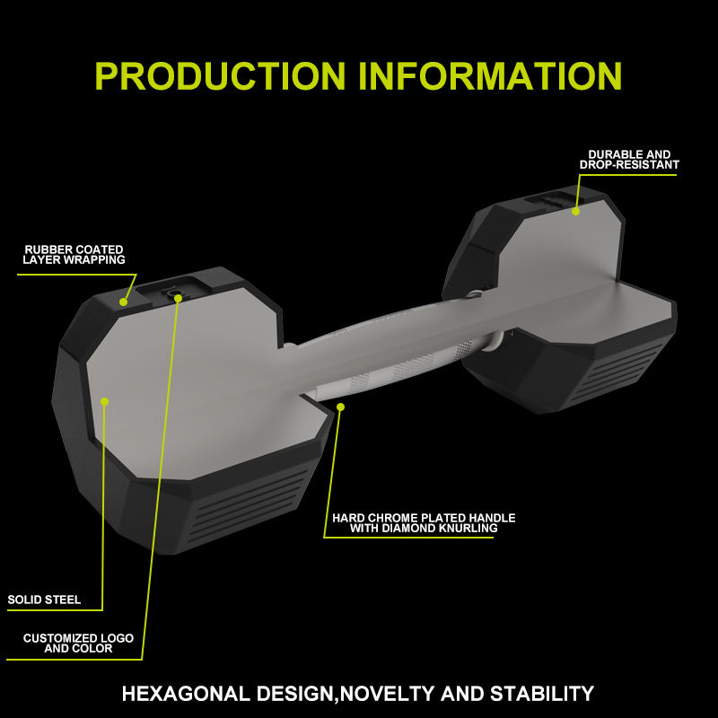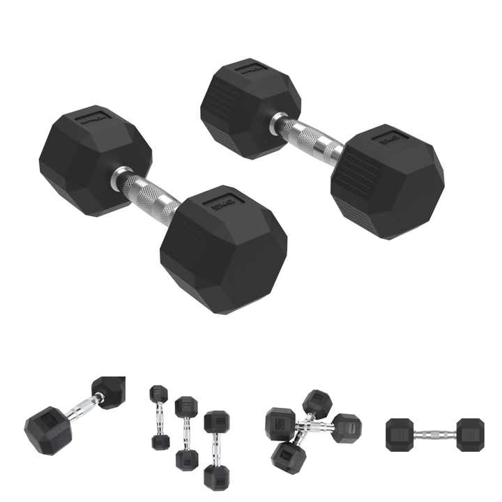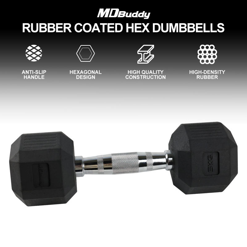 Haltères hexagonaux professionnels MDBuddy en caoutchouc, poids libres, haltères de fitness de style professionnel, ensembles de poids commerciaux