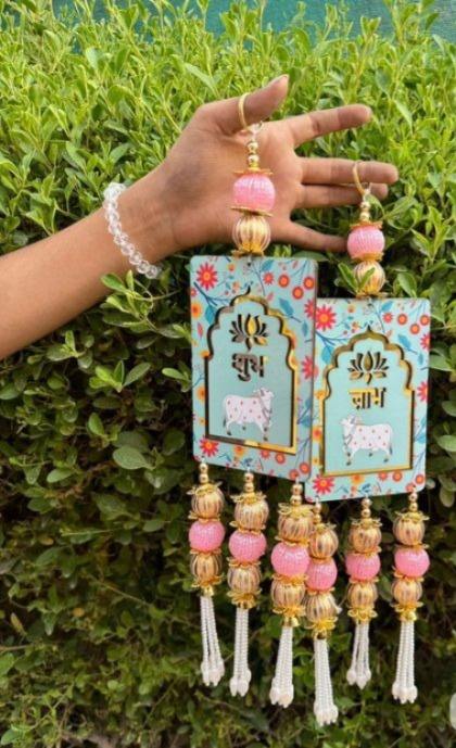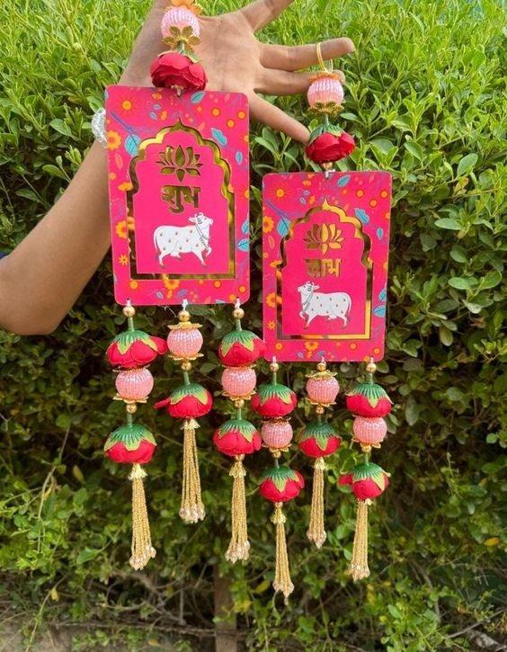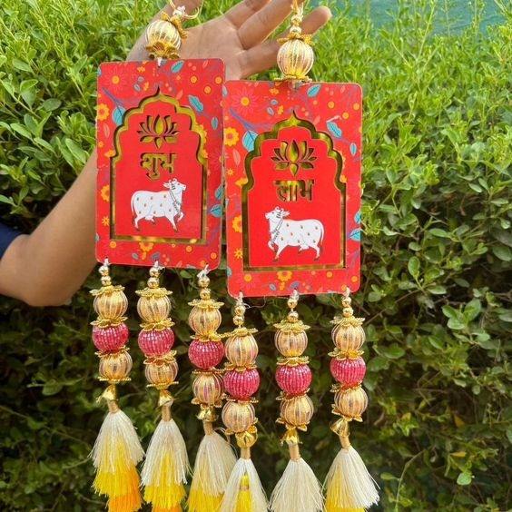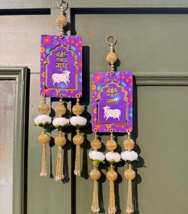 MDF peint à la main Pichwai Shubh Labh vache suspendue Pichwai vache suspendue pour Mandir / Pooja chambre décor/suspendu pour Diwali décor