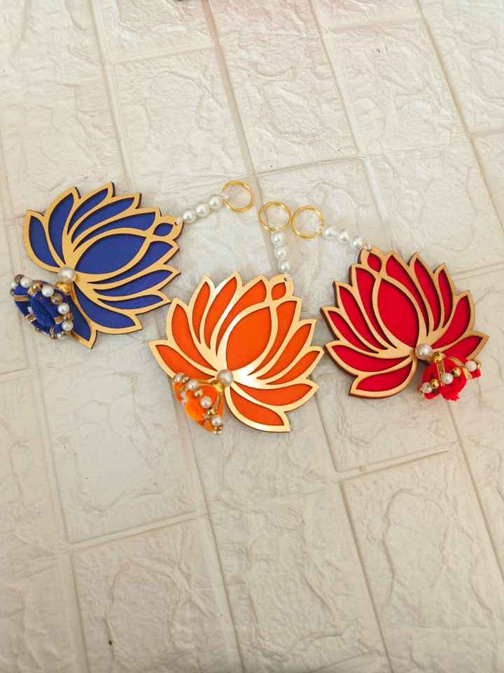 MDF Lotus Backdrop Hanging, adorned with Jhumka/Tassels perfect decor for Pooja, Mandir, Diwali, Holi, Weddings, and Festival