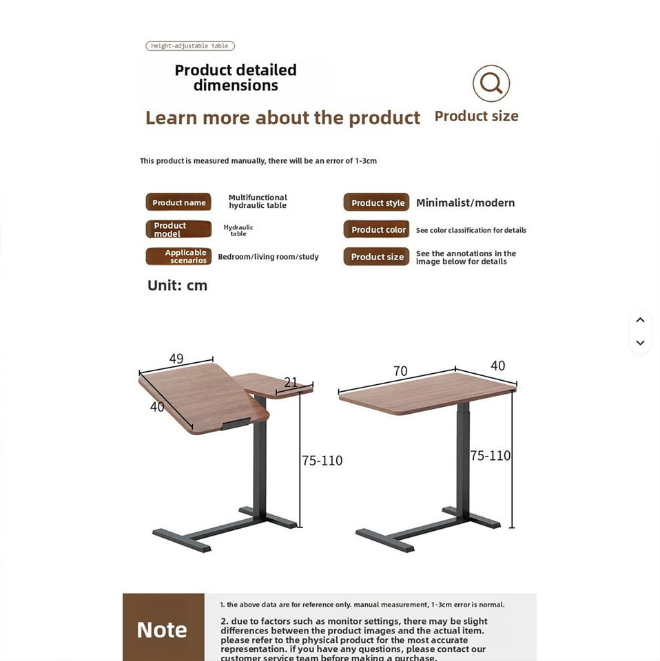 Conception:Table de chevet mobile et réglable à levage hydraulique