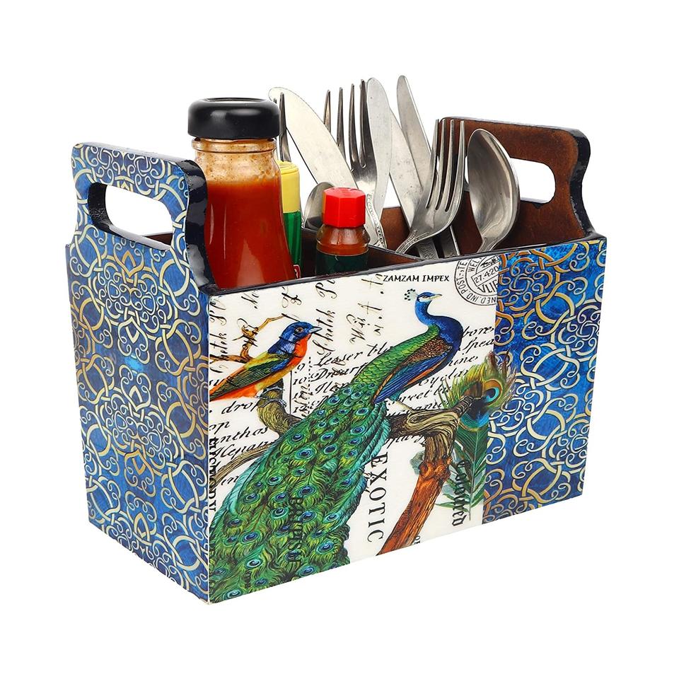 Porte-couverts en résine MDF avec revêtement en émail et manche en bois Lavage à la main uniquement