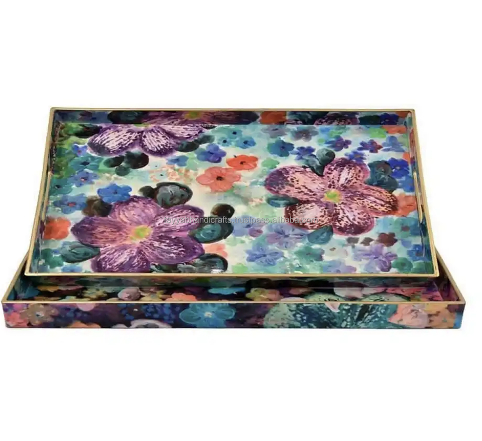 Autocollant imprimé en MDF Meena Work Plateau de service Taille et design personnalisés Produit fait à la main pour la cuisine