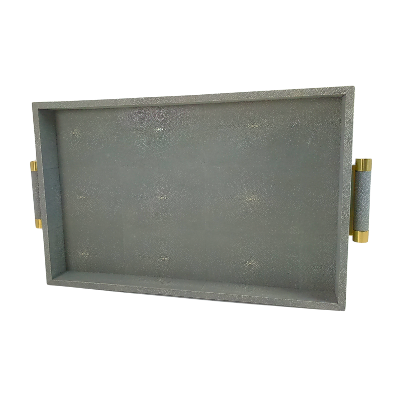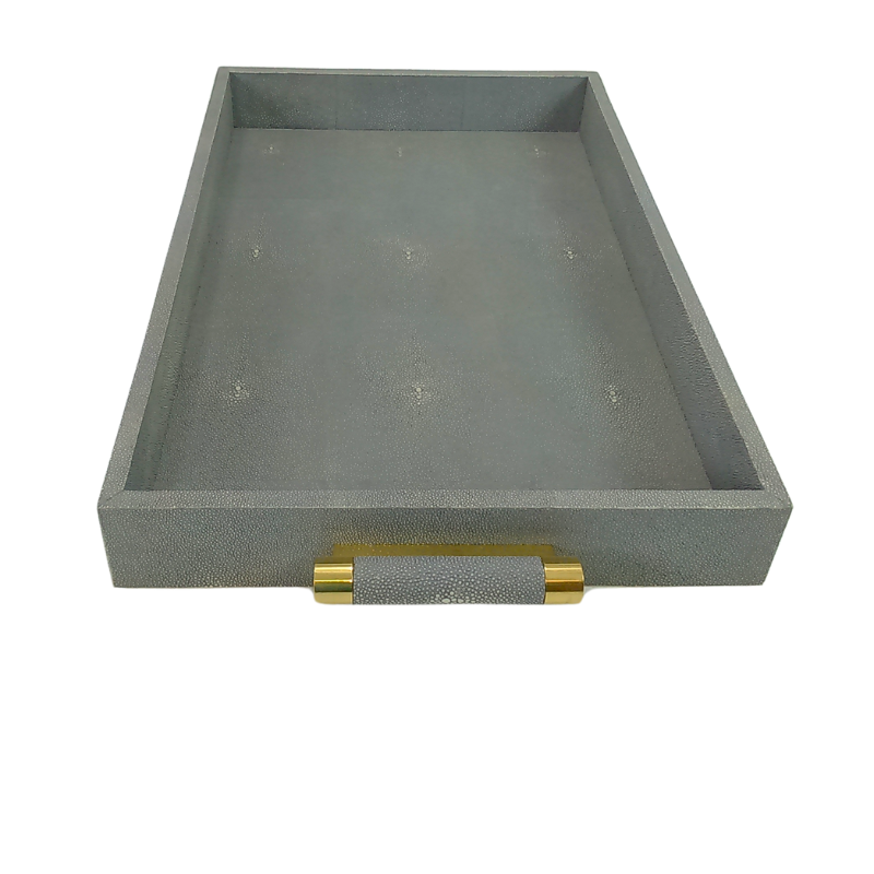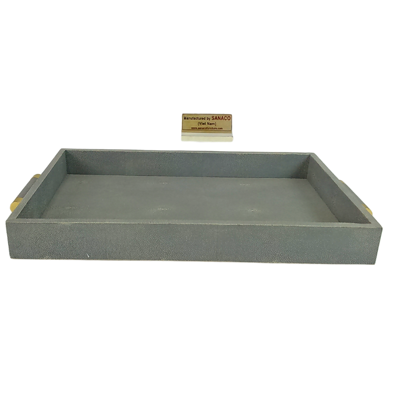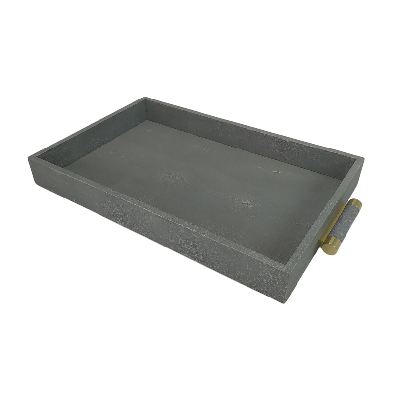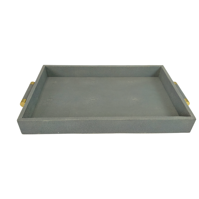 DPC Model 058 MDF + Faux Shagreen + Velvet 0.605x0.38x0.065 Square Tea Tray with Brass Insert Handle
