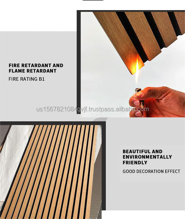 XH Decor CO.,LTD Panneau mural acoustique lames MDF plaqué, ép. 12-22 mm, feutre polyester 9 mm, pour appartements, échantillon 20x30 cm