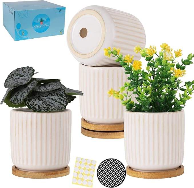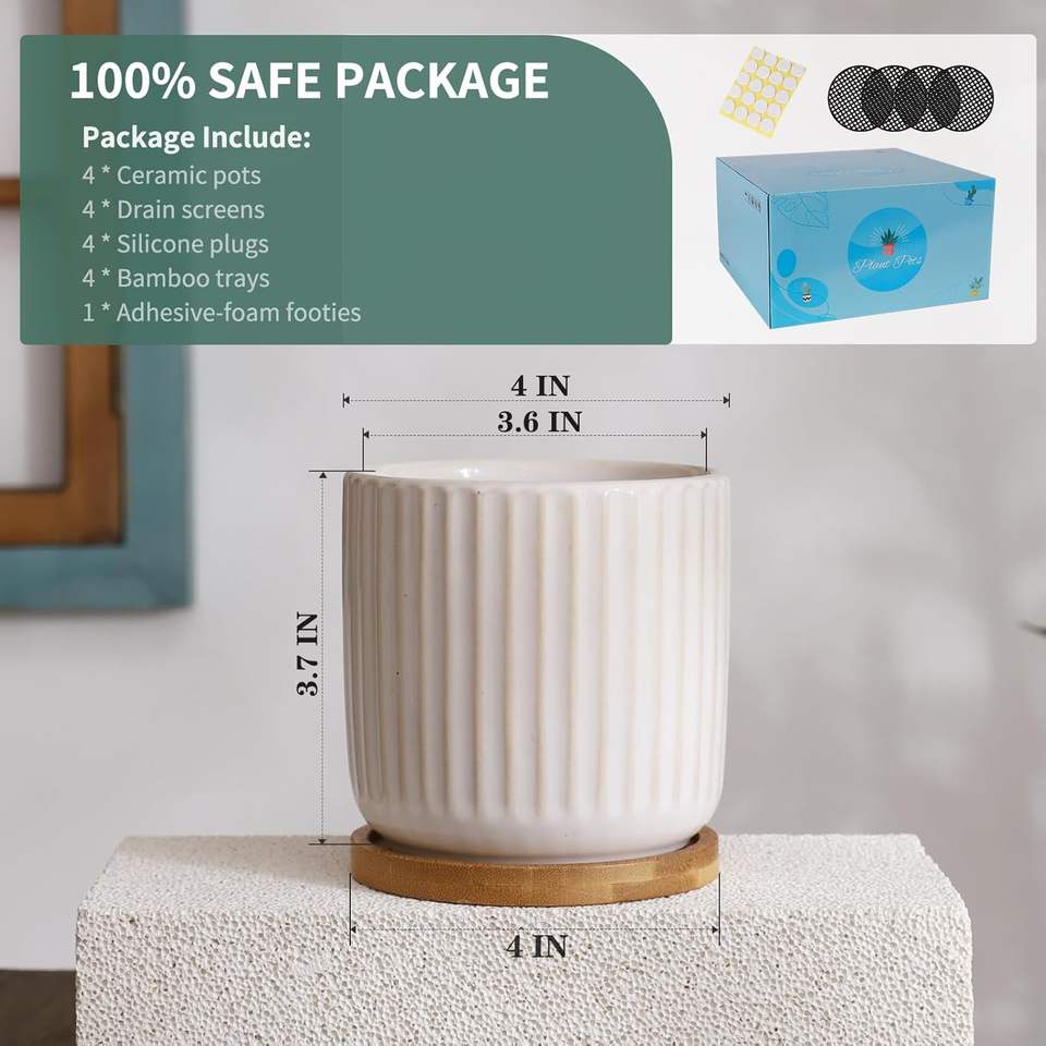 Pots de plantes en céramique MDJ de 4 pouces avec trous de drainage, design moderne pour une utilisation en intérieur, pour les succulentes, les cactus et les herbes, lot de 4