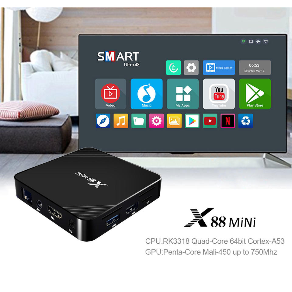 ME X88 Mini TV Box Android 9.0 RK3318 Quad Core 4K Android Box 2GB 16GB USB 3.0 2.4G Wifi 100M X88mini H.265