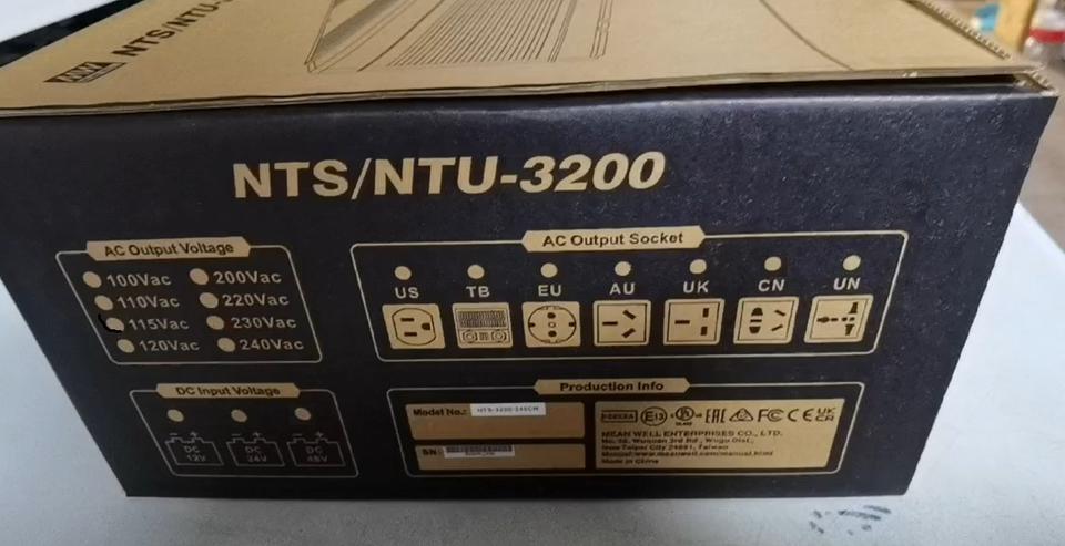 Convertisseur d'énergie à onde sinusoïdale pure DC-AC haute fiabilité MEAN WELL NTS-3200-112US 3200W 12VDC vers 110VAC