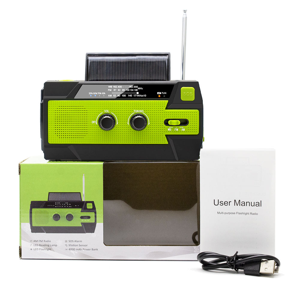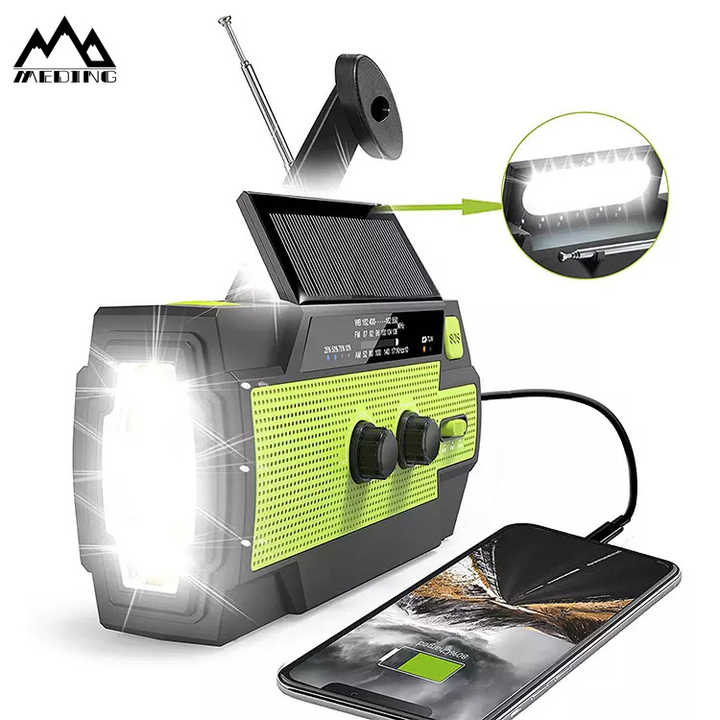 Radio d'urgence solaire 3-en-1 MEDING à manivelle, générateur dynamo solaire, torche, chargeur USB pour téléphone