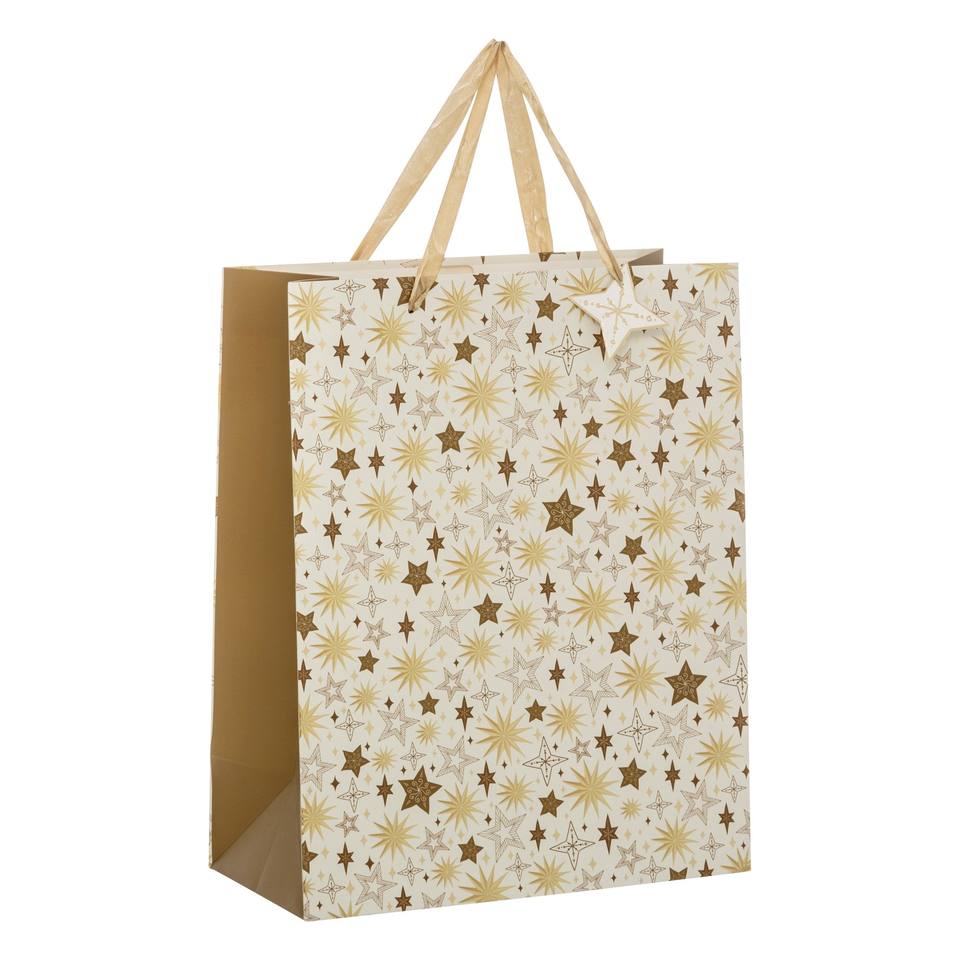 SAC EN PAPIER MEDIUM AVEC DÉCORATION ÉTOILES DORÉES 26X12.7 H. 32.4CM