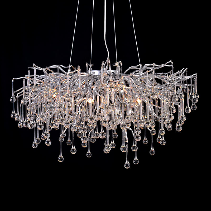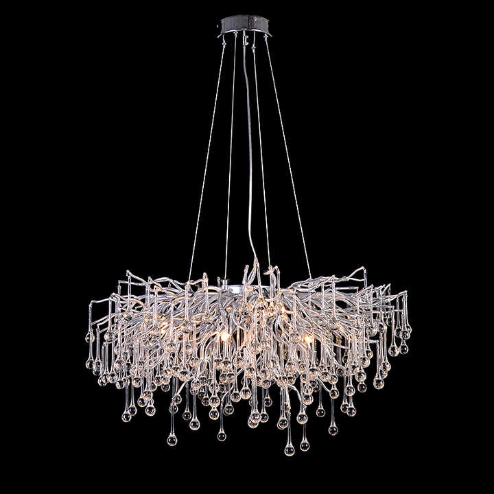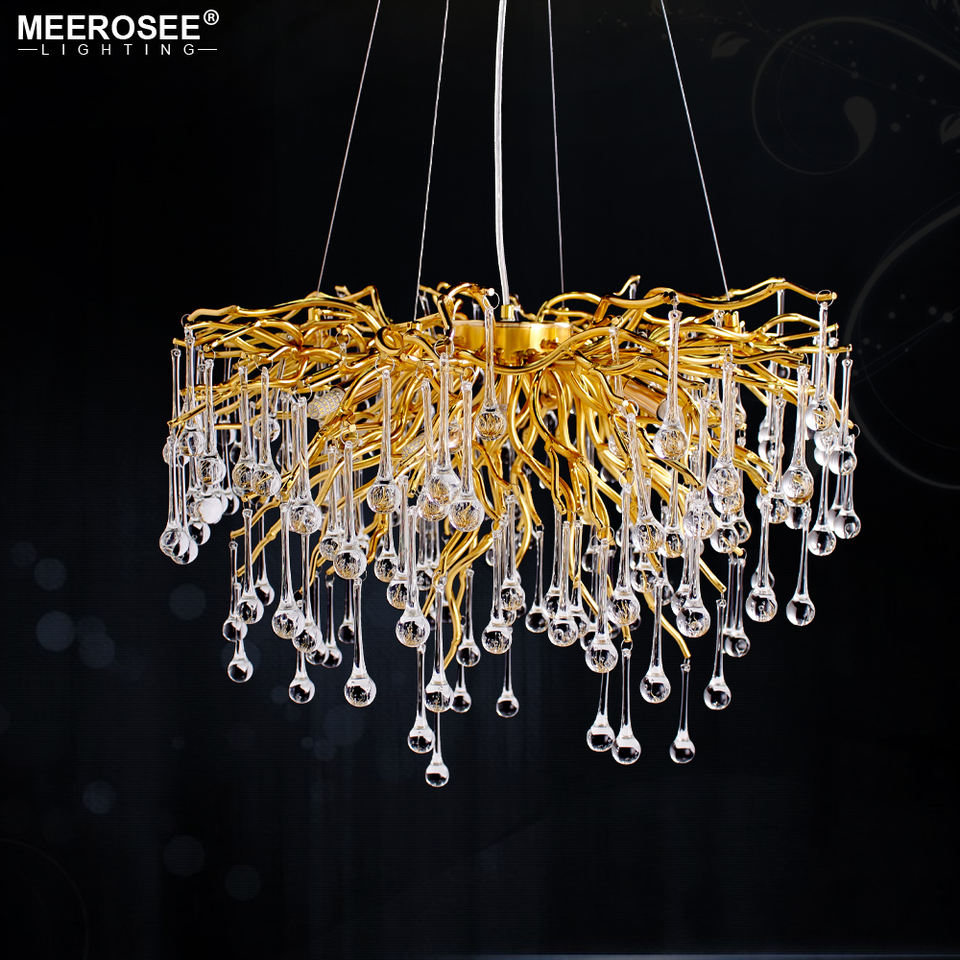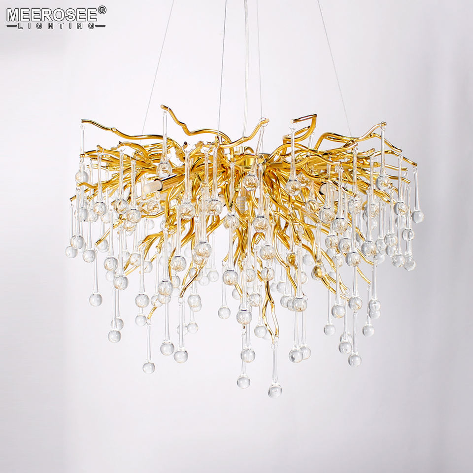 Lustre moderne en cristal MEEROSEE, lustre rond en forme de branche de forêt, éclairage pour salle à manger, grands lustres pour plafond haut MD8015