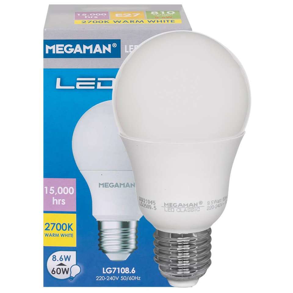 MEGAMAN Lampe LED AGL-Form Classic E27/86W Opal 2700K Blanc Chaud Doux 810 Lumens Modèle Aluminium MM21045