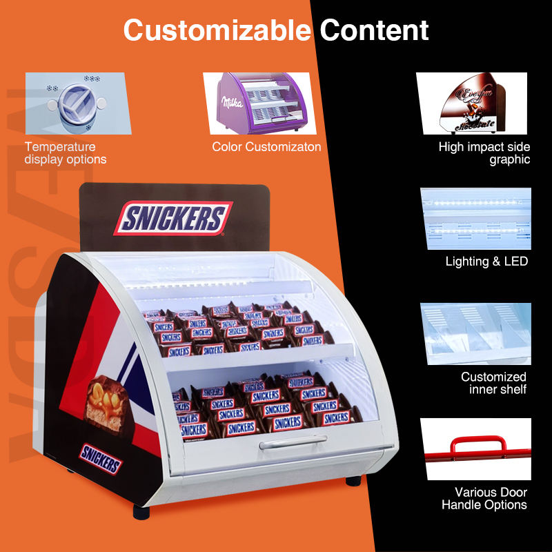 Porte en verre magasin utiliser mini table top réfrigérateur pour petits chocolats