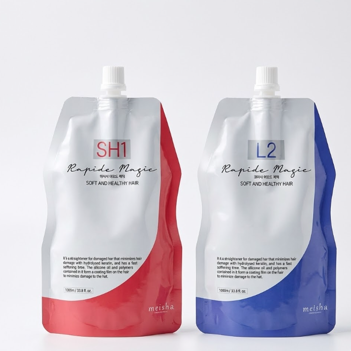MEISHA Pro Rapid Magic Heating Perm 1000ml pour usage professionnel en salon, lissage rapide, réparation protéinée, moins de dommages