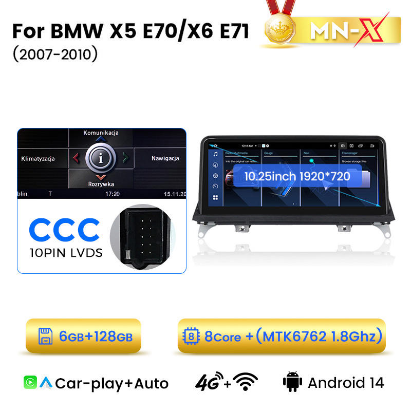 MEKEDE Android 14 Car Play Auto Multimedia Navigation pour BMW X5 X6 E70 2011-2014 Double Din Car Stereo
