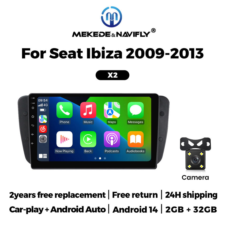 MEKEDE-Autoradio avec écran tactile, Android 14, 4 cœurs, 2 + 32 Go, 1024x600, IPS, navigation FM, pour Seat Ibiza 2009-2013
