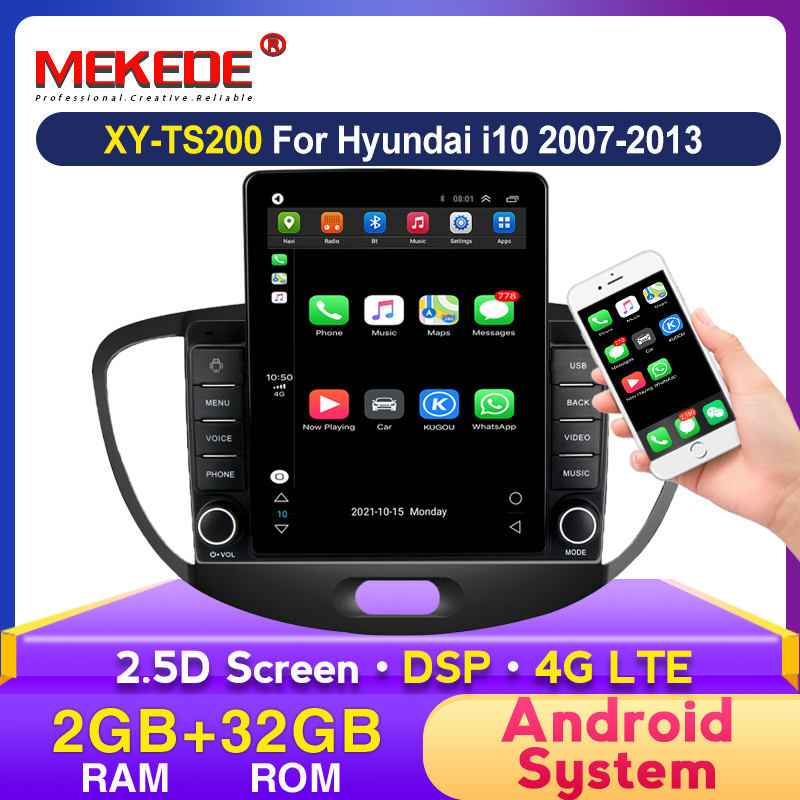 Lecteur DVD de voiture MEKEDE Android 4core pour Hyundai I10 2007-2013 2 + 32GB WIFI GPS Radio SWC AM IPS DSP 2.5D