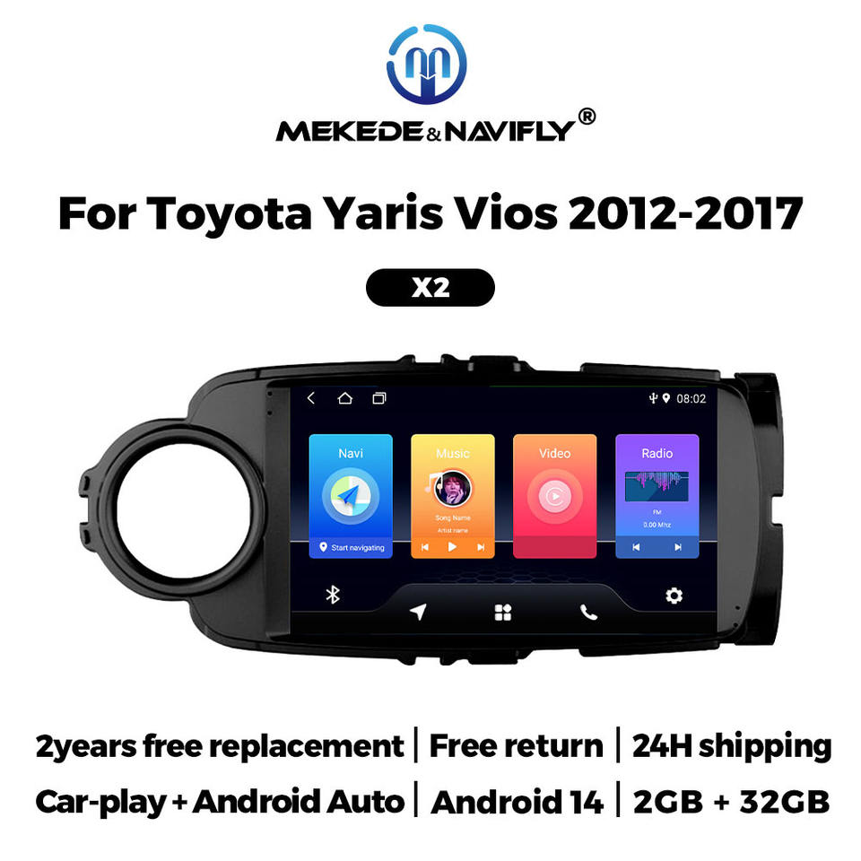 MEKEDE Android Auto 4 cœurs 2+32 Go FM Car-play Autoradio Lecteur multimédia de voiture Écran tactile IPS pour Toyota Yaris Vios 2012-2017