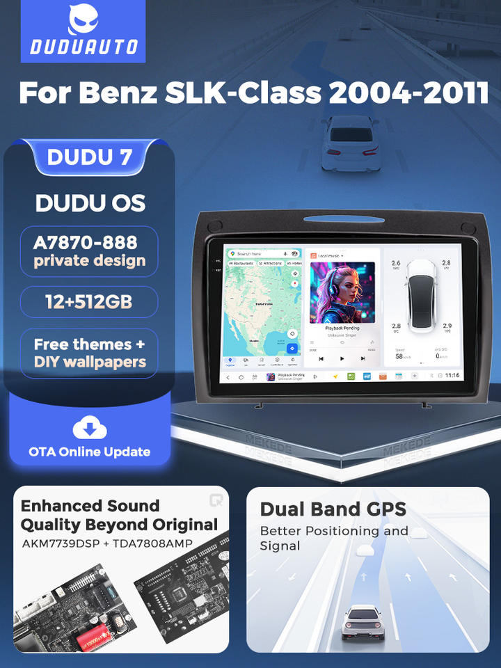 MEKEDE Android Car Video Car Audio Car Dvd DUDU 2K Écran tactile 12 + 512GB System7870 pour Benz SLK Class R171 2004 - 2011
