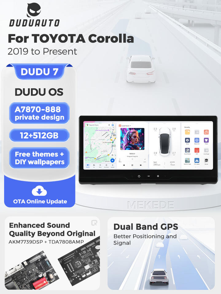 MEKEDE DUDU7 A7870 Écran radio Android, système multimédia de voiture, Car-play, navigation GPS automatique pour TOYOTA Corolla 12,3 pouces de 2019 à aujourd'hui