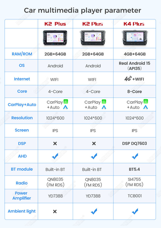 MEKEDE K2 K4 Nouveau Lecteur Multimédia Écran Radio Android Auto Car-play 7 Pouces pour VW Golf 7 Polo Passat B6 B7 CC Skoda Jetta