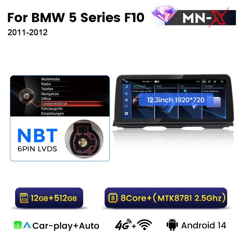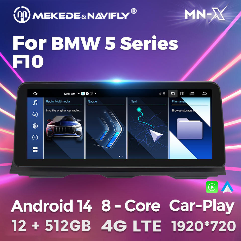 MEKEDE MNX Autoradio Android 8 cœurs 12+512 Go pour BMW Série 5 F10 avec BT WIFI 4G LTE GPS