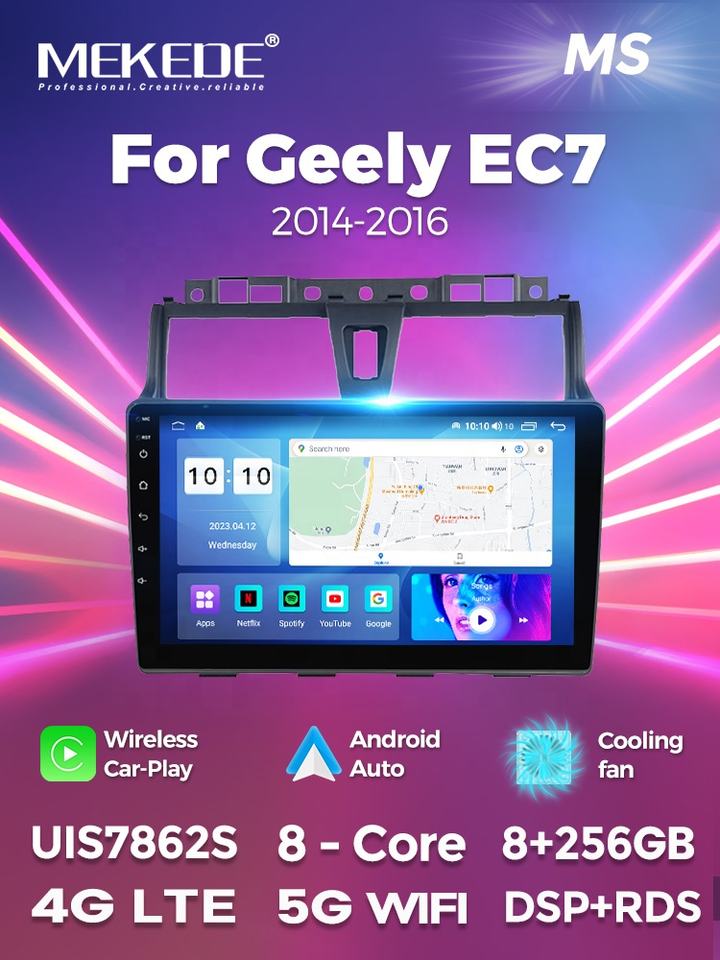 MEKEDE MS Autoradio WiFi sans fil 4G LTE 2din Android 12 pour Geely EC7 2014-2016 Autoradio avec caméra 360 Navigation GPS