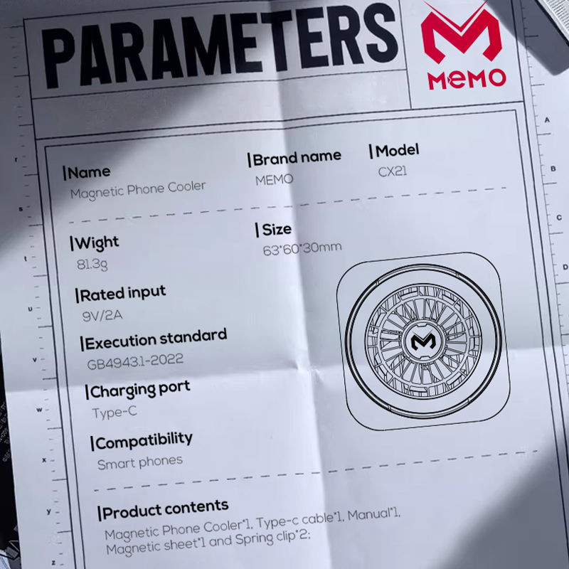 Refroidisseur de téléphone magnétique MEMO CX21 à semi-conducteurs 18W avec clip détachable pour dissipation thermique des téléphones portables