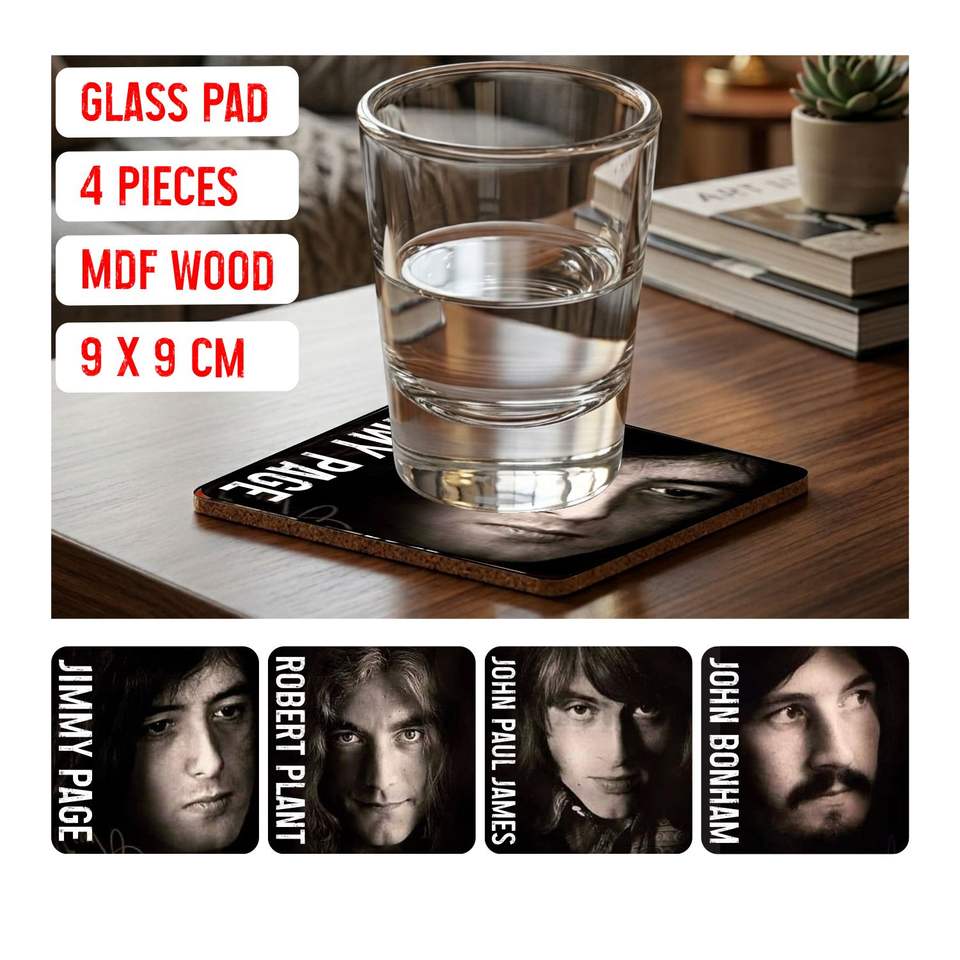 PACK DE MERCHANDISES LED ZEPPELIN : porte-clés, plaque en verre et boîte colorée artisanale