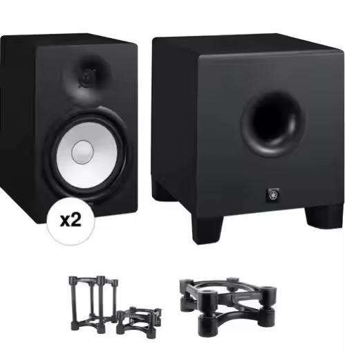 Moniteurs de studio amplifiés MERIT BVHS8 et caisson de basses HS8S avec kit de supports d'isolation