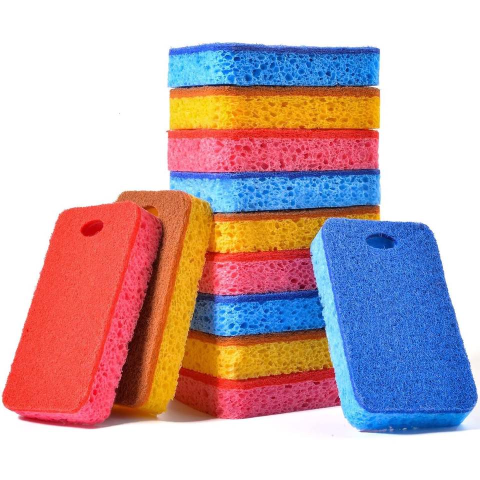 METUUTER Lot de 12 éponges de nettoyage et tampons à récurer double face en cellulose, robustes pour la cuisine