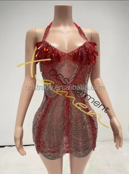 MF Custom Jersey Empire Waist Rhinestone Bodycon Birthday Women Sparkly Diamond Party Halter Beaded Sexy Club Mini Dress