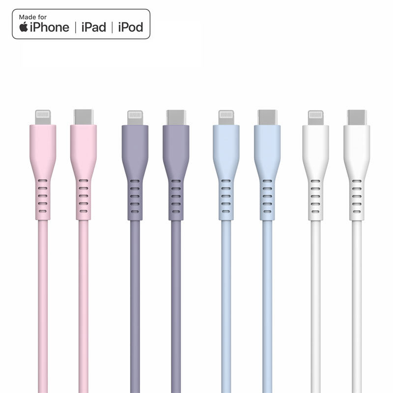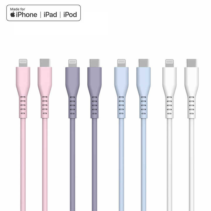 MFi Fournisseur d'usine Coloré Pd 60w Usb C Liquide Silicone Souple 480mpbs Transfert de Date Câbles de Charge Rapide pour Iphone Ipad Ipod